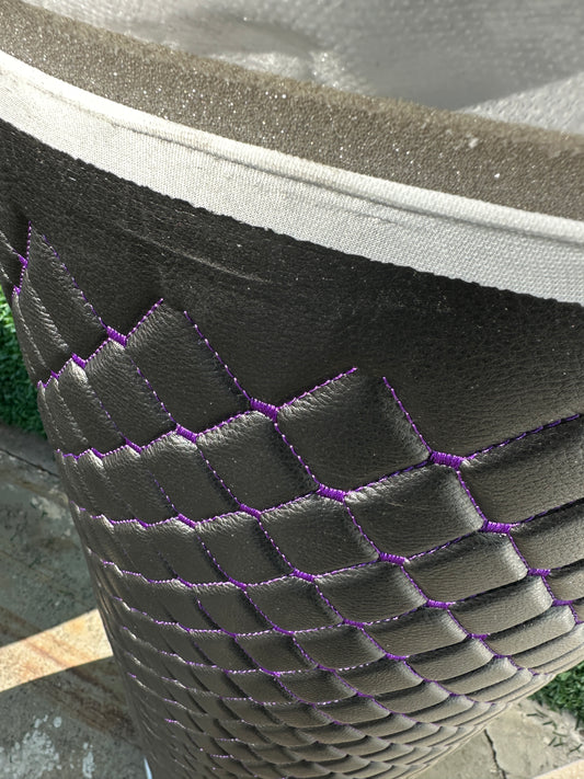 Black Purple Quilted Vinyl Faux Leather Car Upholstery Fabric | 2"x2" 5x5cm Diamond Stitch with 5mm Foam | 140cm Wide | Automotive Projects