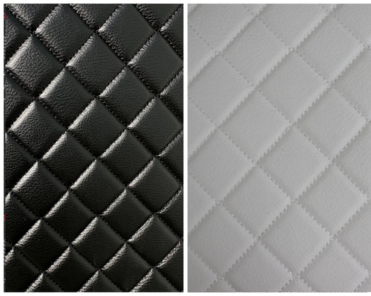 Black Quilted Black Vinyl Faux Leather Car Upholstery Fabric | 2"x2" 5x5cm Single Diamond Stitch with 5mm Foam | 140cm Wide | Automotive
