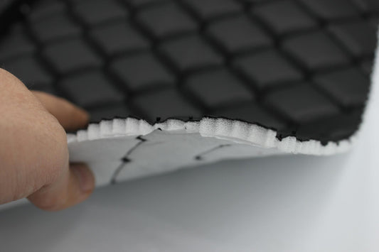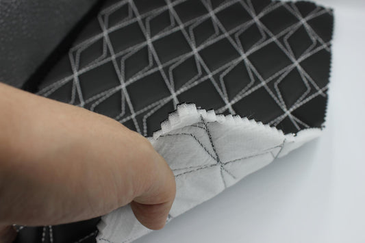 Black Quilted Black Vinyl Faux Leather Car Upholstery Fabric | 2" x 5cm Pattern Line Stitch with 5mm Foam Backing | 140cm Wide | Automotive Projects