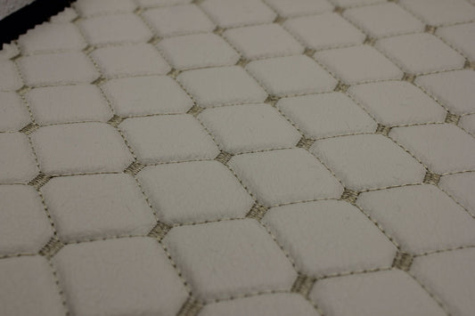 Beige Beige Quilted Beige Vinyl Faux Leather Car Upholstery Fabric | 2"x2" 5x5cm Diamond Stitch with 5mm Foam | 140cm Wide | Automotive Projects