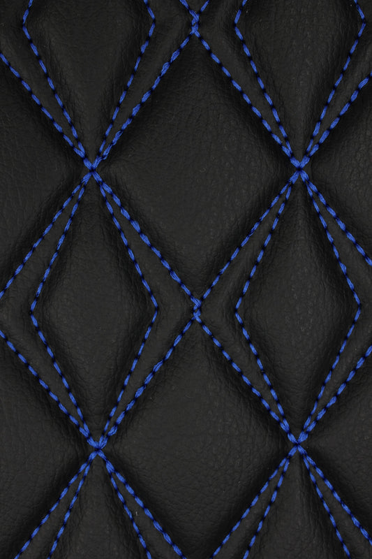 Blue Quilted Black Vinyl Faux Leather Car Upholstery Fabric | 2"x2" 5x5cm Diamond Stitch with 5mm Foam Backing | 140cm Wide | Automotive Projects