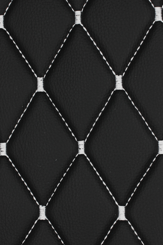 White Quilted Black Vinyl Grain Faux Leather Car Upholstery Fabric | 2"x3" - 5x8cm Big Diamond Stitch with Foam | 140cm & 55.1" Wide | Artificial Leather