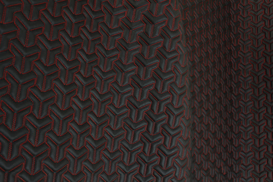 Trio Triangle Red Quilted Faux Leather Upholstery Fabric | Foam Backing | Automotive, Marine, Furniture | 140cm (55.1") Wide Mercedes - BMW - VW