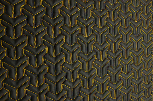 Trio Triangle Yellow Quilted Faux Leather Upholstery Fabric | Foam Backing | Automotive, Marine, Furniture | 140cm (55.1") Wide Mercedes - BMW - VW