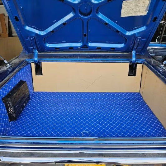 Trio Triangle Blue Quilted Faux Leather Upholstery Fabric | Foam Backing | Automotive, Marine, Furniture | 140cm (55.1") Wide Mercedes - BMW - VW
