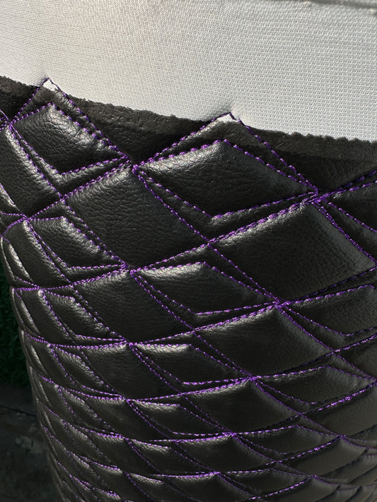 Purple Upholstery Synthetic Butterfly Stitched Black Leather & Foam Backing - Perfect for DIY Projects |Car Seats | Door ,Interior, Headline |140cm