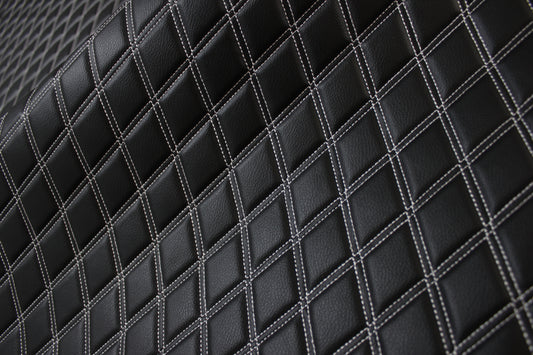 Green Quilted Black Vinyl Faux Leather Car Upholstery Fabric | 2" x 5cm Hexagon Pattern Stitch with 5mm Foam Backing | 140cm Wide | Automotive