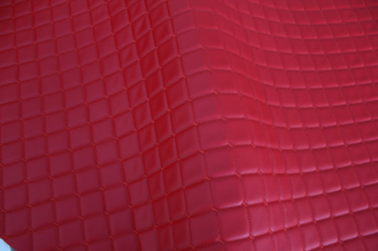 Red Quilted Red Vinyl Faux Leather Car Upholstery Fabric | 2"x2" 5x5cm Diamond Stitch with 5mm Foam | 140cm Wide | Automotive Projects