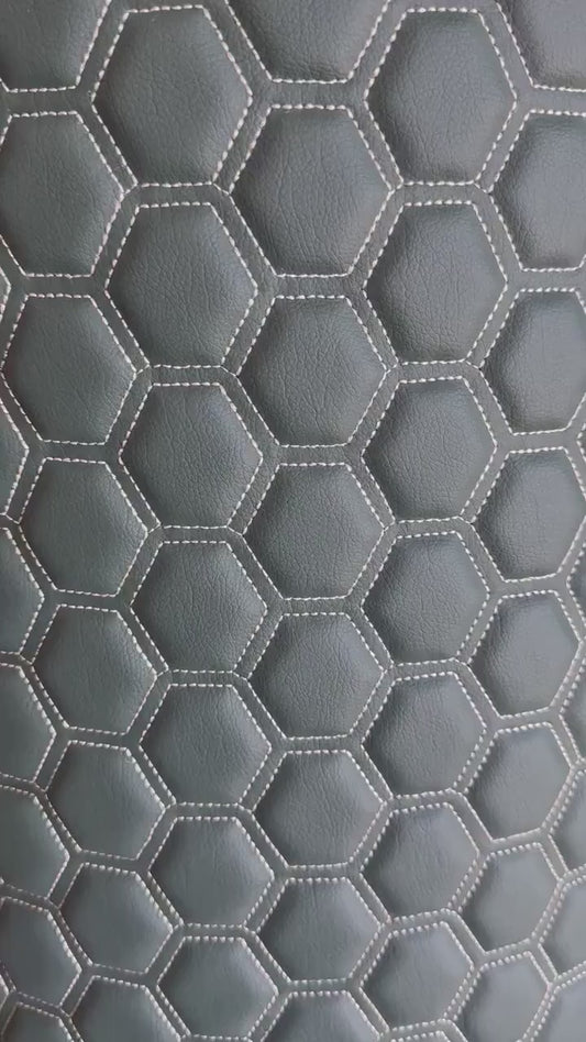 Blue Quilted Black Vinyl Faux Leather Car Upholstery Fabric | 2" x 5cm Hexagon Pattern Stitch with 5mm Foam Backing | 140cm Wide | Automotive